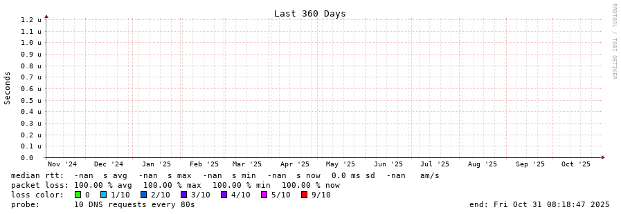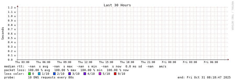 traceroute to 2001:500:2f::f (2001:500:2f::f), 30 hops max, 80 byte packets - Generated at 2025-10-31 08:00:01 3 > 4 > 5 > 6 > 7 > 8 > 9 > 10 > 11 > 12 > 13 > 14 > 15 > 16 > 17 > 18 > 19 > 20 > 21 > 22 > 23 > 24 > 25 > 26 > 27 > 28 > 29 > 30 >