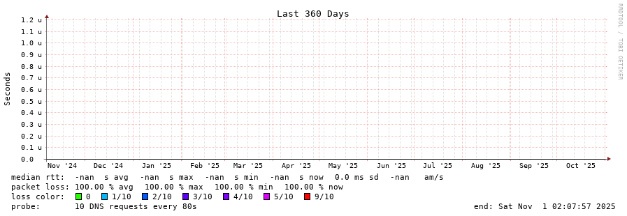 traceroute to 2001:500:1::53 (2001:500:1::53), 30 hops max, 80 byte packets - Generated at 2025-10-31 14:30:01 3 > 4 > 5 > 6 > 7 > 8 > 9 > 10 > 11 > 12 > 13 > 14 > 15 > 16 > 17 > 18 > 19 > 20 > 21 > 22 > 23 > 24 > 25 > 26 > 27 > 28 > 29 > 30 >