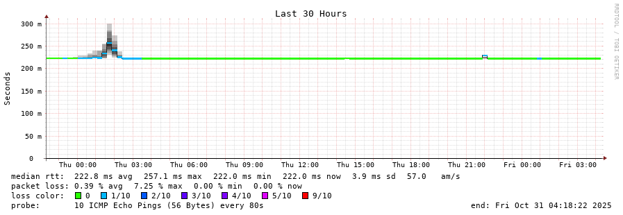 traceroute to 190.105.0.2 (190.105.0.2), 30 hops max, 60 byte packets  -  Generated at 2025-10-31 04:15:01