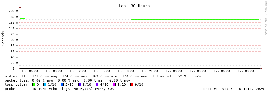 traceroute to 96.127.100.10 (96.127.100.10), 30 hops max, 60 byte packets - Generated at 2025-10-31 00:30:01
