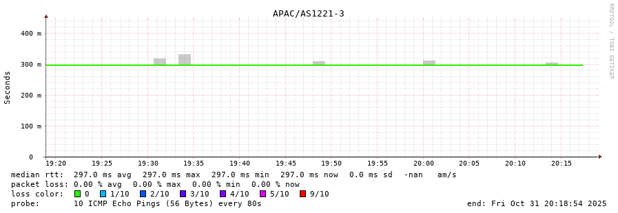 23. Median RTT 0.327 seconds